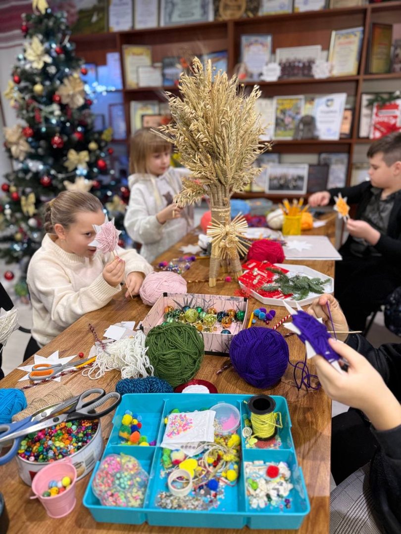 Маленькі майстри створювали власні восьмикутні зірки. Працювали з нитками різного кольору та структури, прикрашали чарівними дзвіночками, «вкладали» у кожен промінь добрі побажання для себе, своєї родини та України.