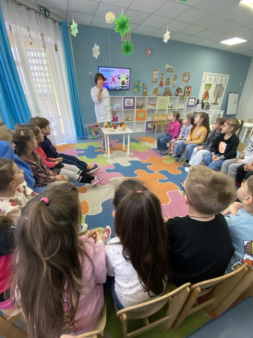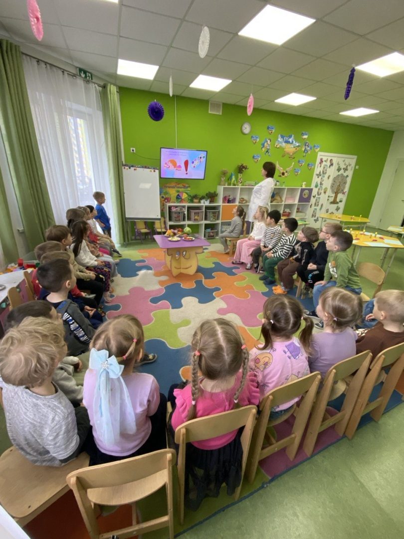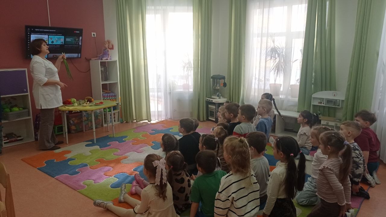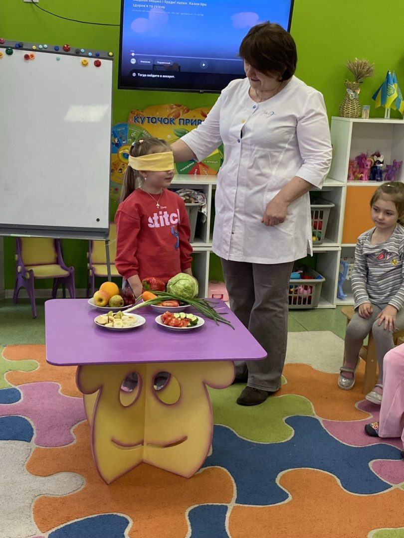 Під час зустрічі діти дізналися про важливість збалансованого раціону, користь овочів, фруктів, злаків та інших продуктів для здоров’я і гарного самопочуття. Малята із задоволенням обговорювали, які страви є корисними, а які варто вживати рідше.