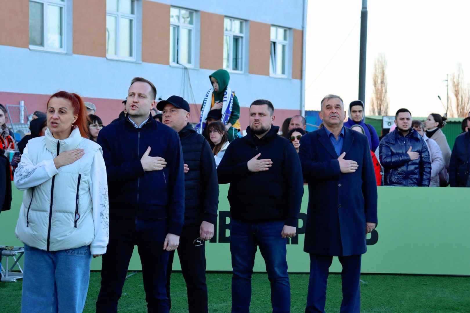 Захід розпочався хвилиною мовчання за загиблими. Державний Гімн України виконала Катерина Корчинська – художній керівник Центру культури і дозвілля Борщагівської громади.