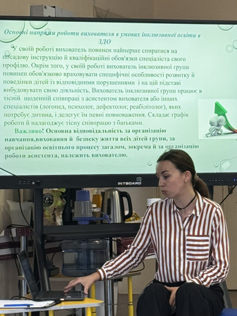 Інклюзивно ресурсний центр (ІРЦ) Борщагівської сільської ради провів зустріч для освітян ЗДО “Малятко” на актуальну тему “Взаємодія між вихователем та асистентом вихователя”. Фахівець ІРЦ Савіна Ірина ділилась своїм досвідом та напрацюваннями про співпрацю вихователя та асистента вихователя, їх взаємодія є ключовим фактором успішного інклюзивного освітнього процесу, надала практичні рекомендації в роботі з дітьми ООП. Співпраця передбачає взаємну підтримку, розподіл обов’язків та спільне створення сприятливого середовища.