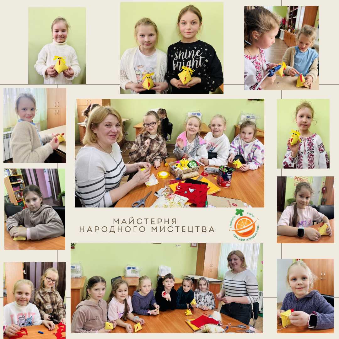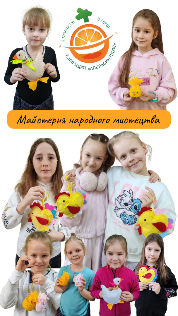 До світлого свята Великодня у гуртку декоративно-ужиткового мистецтва «Майстерня народних мистецтв» (керівник Світлана Макогон) ожила справжня казка. Маленькі майстри Центру дитячої та юнацької творчості “Апельсин Плюс” створили яскраві великодні вироби, у яких поєднали фантазію, щирість і любов до українських традицій. У кожній роботі — частинка весни, тепла та родинного затишку.