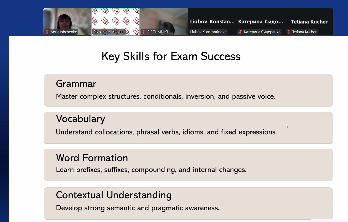 Під час вебінару учасники опанували алгоритм роботи з лексико-граматичними завданнями на прикладах реальних вправ та навчилися ефективно використовувати мультимедійні ресурси курсу Key Links для підвищення мотивації учнів до вивчення англійської мови та вільного спілкування.