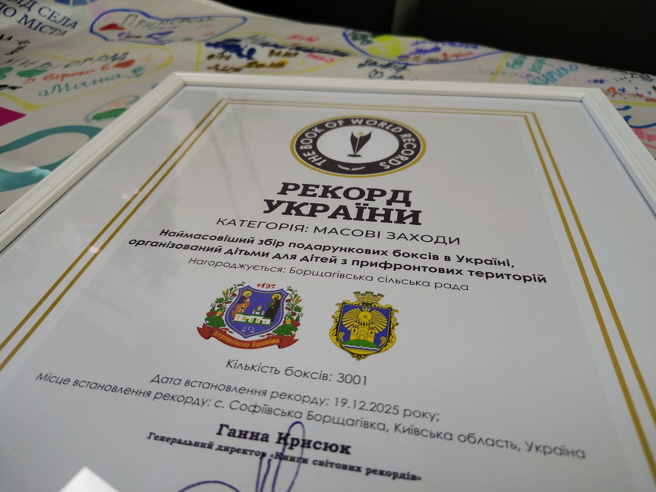 Це досягнення — результат спільної роботи закладів загальної середньої, дошкільної, позашкільної освіти, закладів культури та спорту Борщагівської територіальної громади, громадських організацій, партнерів, волонтерів і, передусім, дітей, які власноруч зібрали подарунки для своїх ровесників у Запорізькій області.