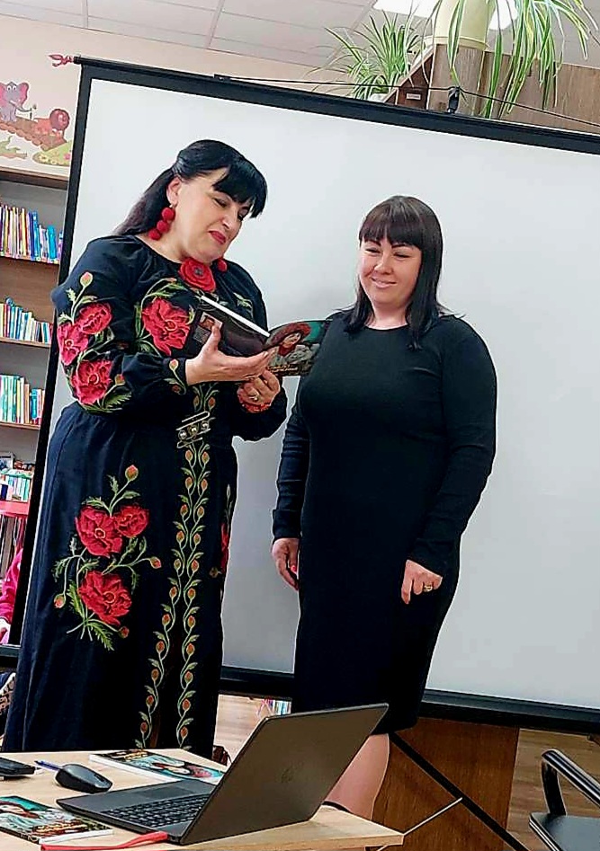 Щира, талановита, харизматична, дотепна — саме такою постала перед нами Оксана Науменко. Її енергія заряджала, її слово надихало. На згадку про цю теплу зустріч Оксана Науменко подарувала бібліотеці примірник книги, тож працівники Публічної бібліотеки запрошують усіх охочих зазирнути на сторінки “Фольклопередбачень”!.