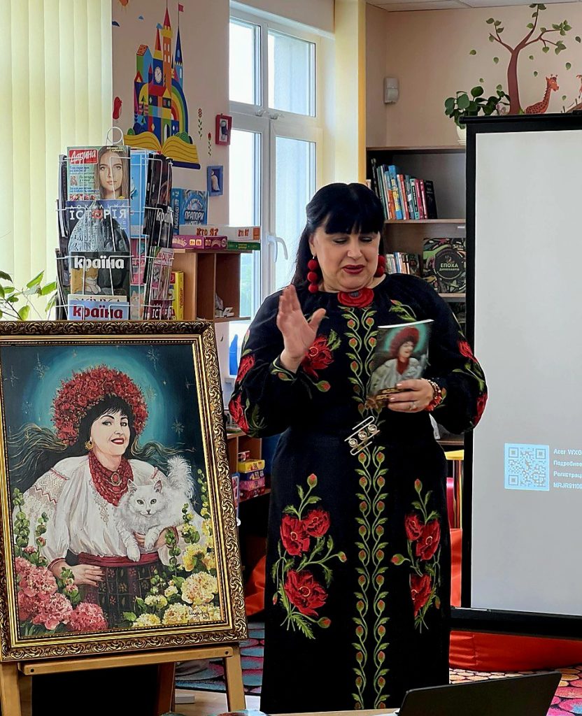 Пані Оксана презентувала свою книгу “Фольклопередбачення” — унікальний збірник українських прислів’їв та приказок, які, мов коштовне зерно, зберігають у собі мудрість багатьох поколінь. У книзі зібрано 450 народних висловів — і це число невипадкове. Воно має глибоке символічне значення: “4.5.0” — це кодове повідомлення наших захисників: “Все добре, все спокійно”. Пані Оксана вірить: допоки ми бережемо мову та культуру — все буде добре!