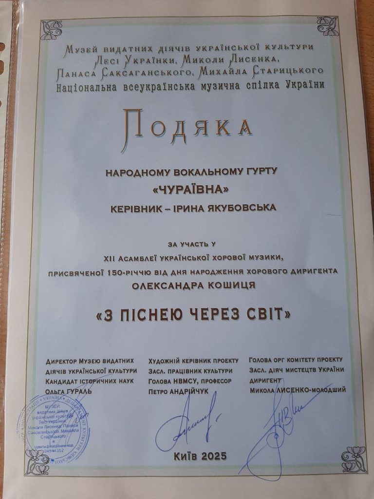 Таким чином, участь «Чураївни» у XII Асамблеї хорового мистецтва стала не лише ще одним здобутком для колективу, а й живим прикладом того, як через пісню зберігається національна пам’ять і передається дух української культури з покоління в покоління.