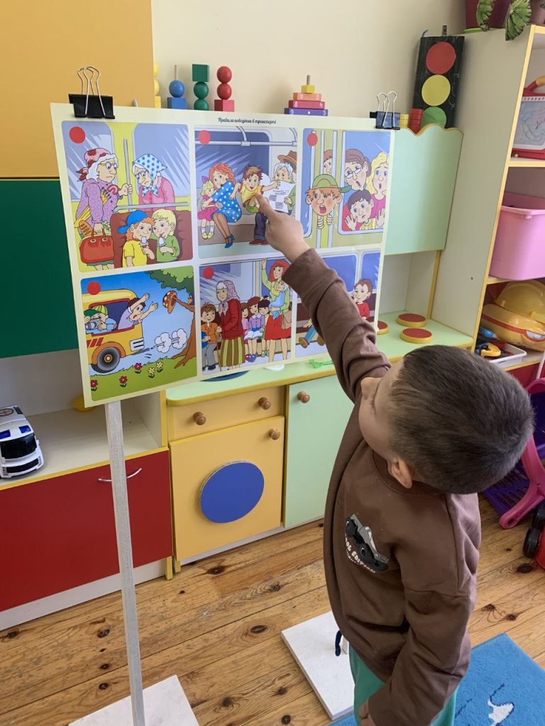 Діти знайомилися з правилами поводження в громадському транспорті, відпрацьовували навички переходу дороги, вивчали дорожні знаки