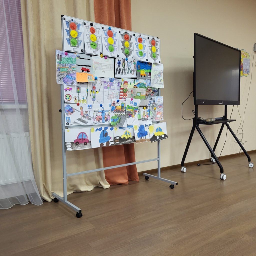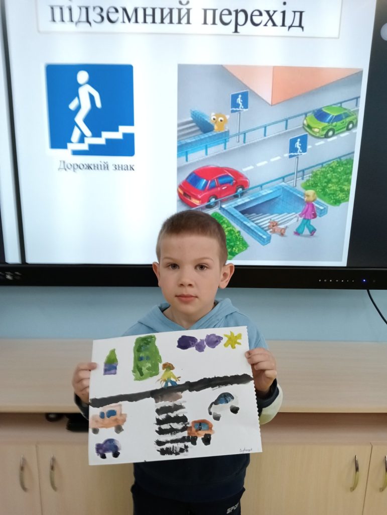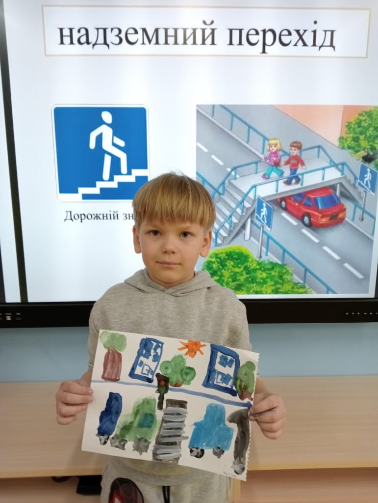 Групи різного віку активно вивчали правила дорожнього руху – малювали малюнки, проглядали корисні відеоролики, грали в інсценування, робили аплікації – всі роботи дітей були виставлені на дошці закладу.