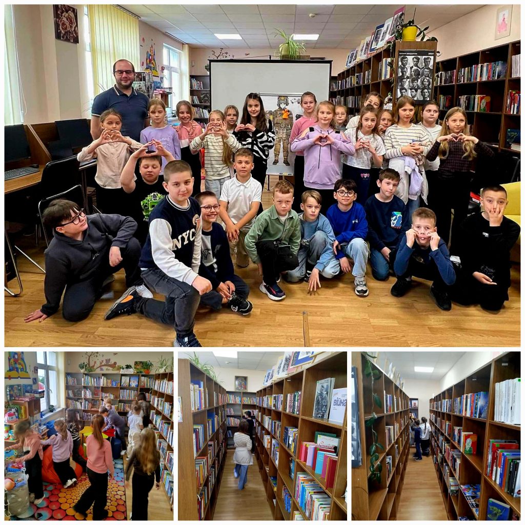 Директорка бібліотеки, Наталія Василівна, провела щиру бесіду з дітьми: чому ми вшановуємо героїв, хто вони, і чому повага до наших захисників — це обов’язок кожного українця.