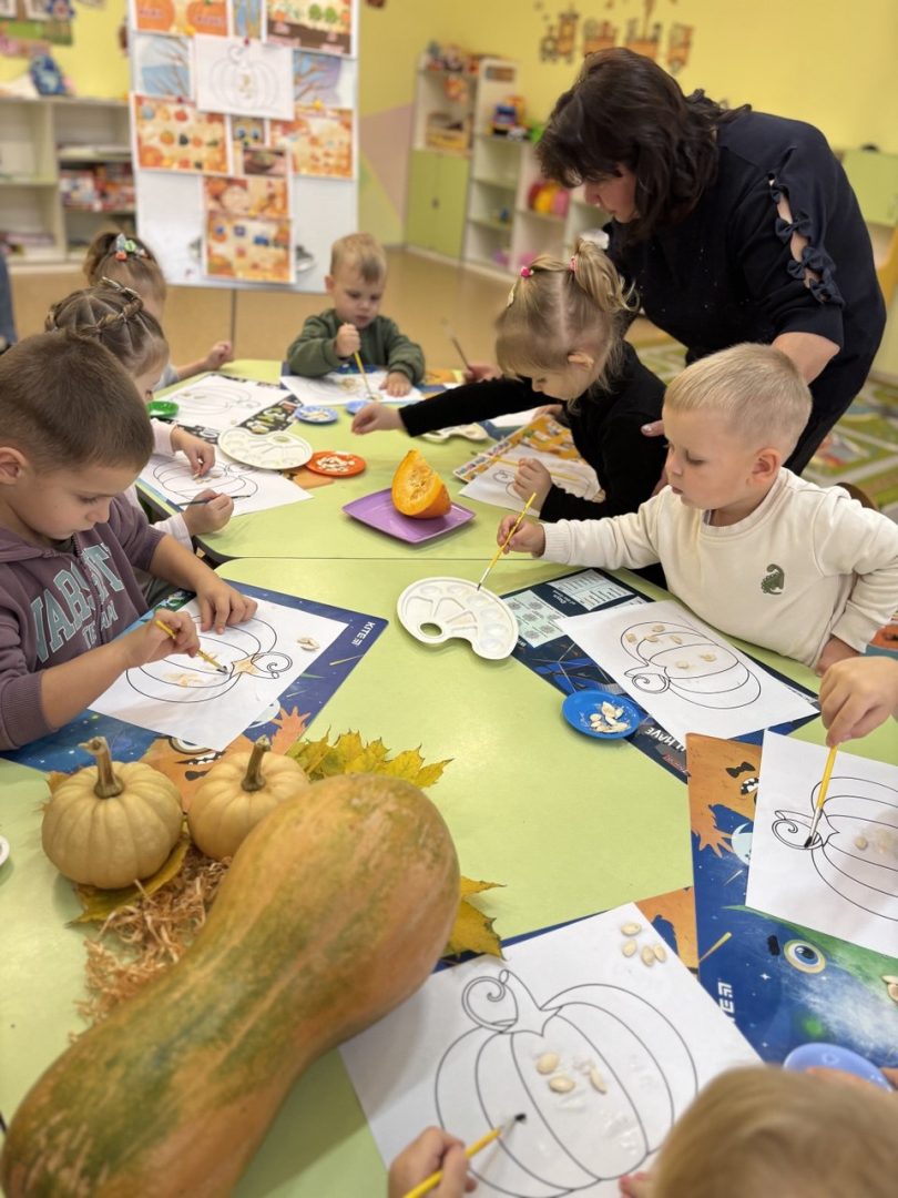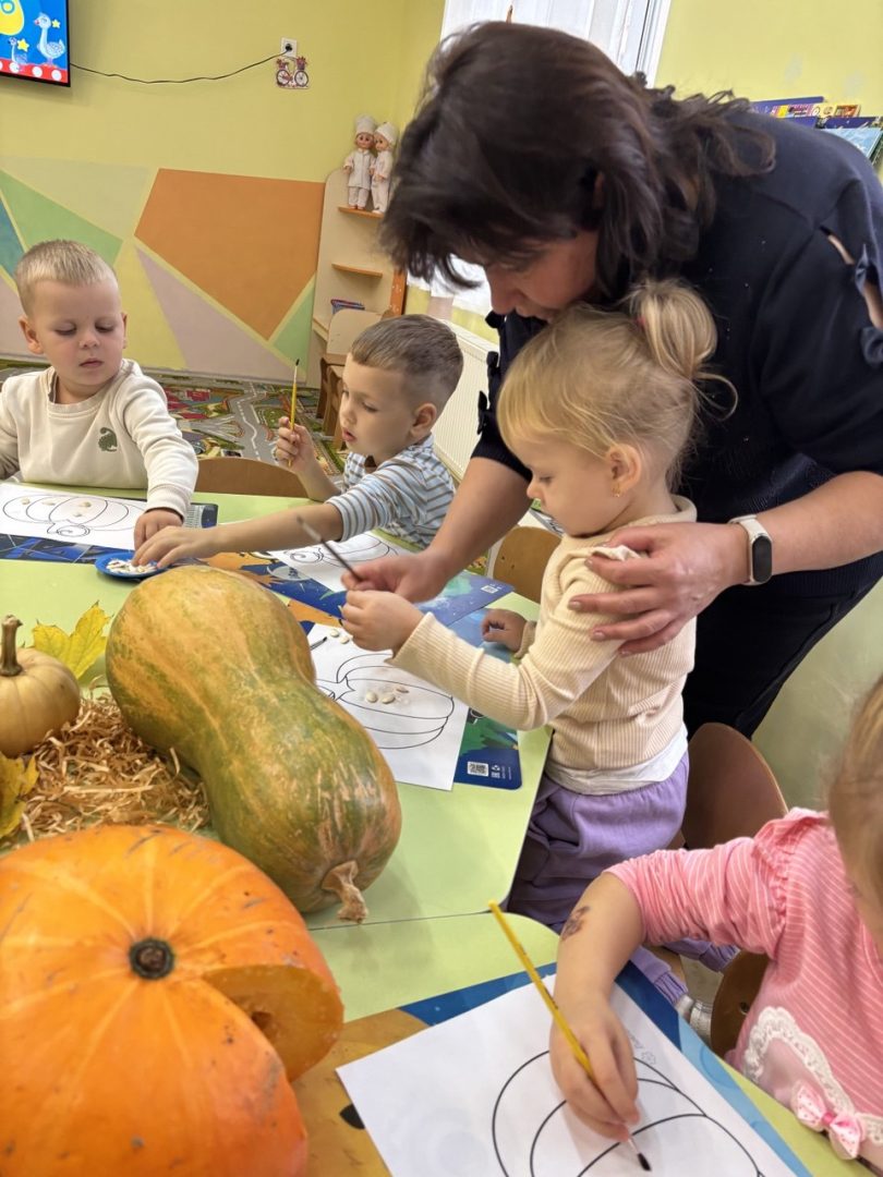 21 жовтня в ЗДО “Дивосвіт” провели показове заняття «Подорож до гарбузового царства» вихователь Зарема Сарибілялова та асистент вихователя Віталіна Новікова. Мета заняття була: збагатити знання дітей про цей овоч, його користь для здоров’я, різноманіття страв, які з нього готують.