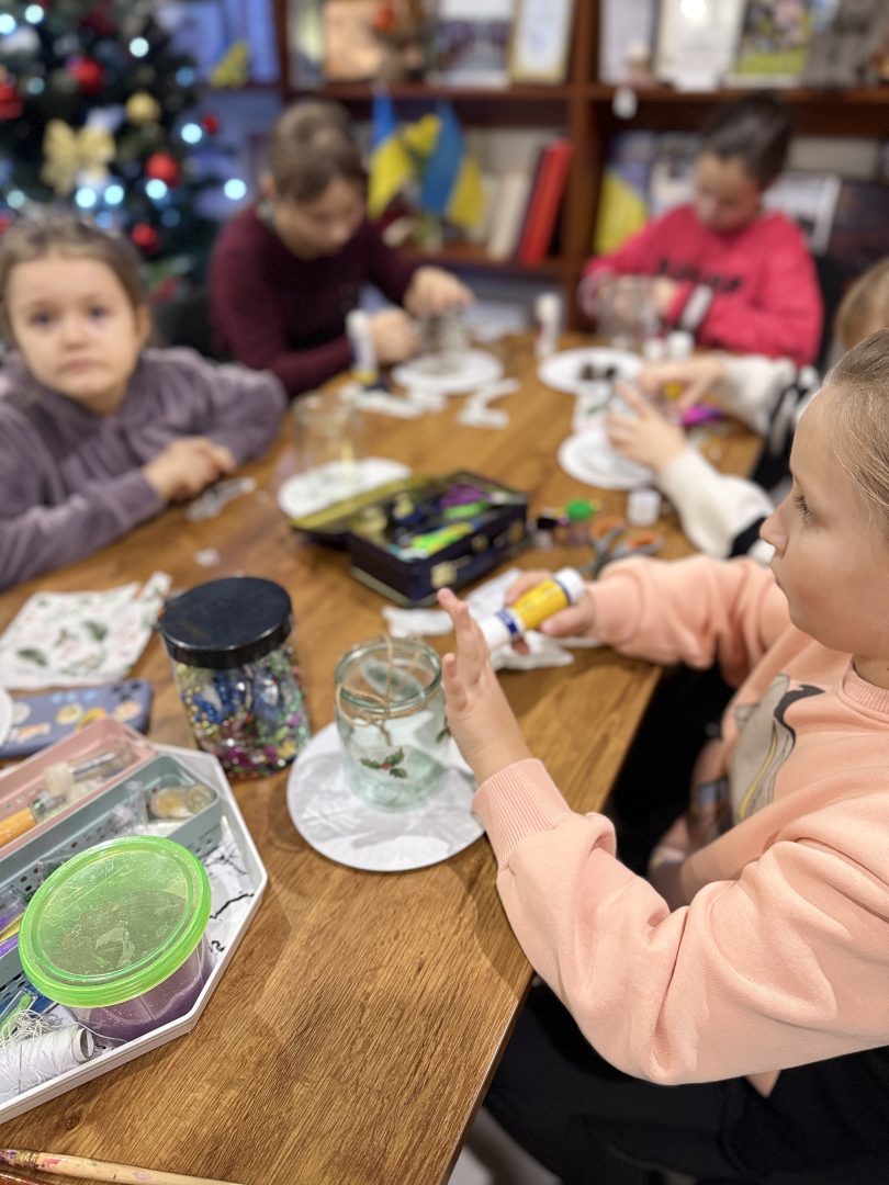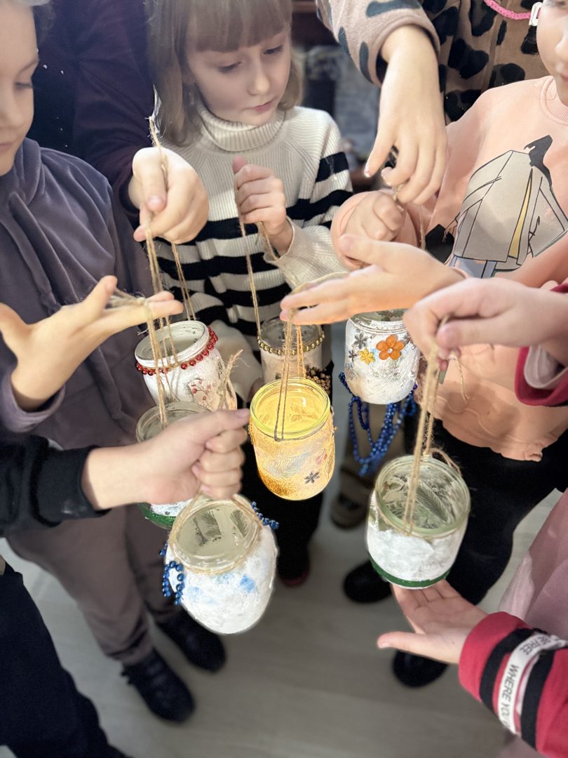 Головним завданням зустрічі стало створення власного символічного ліхтарика. Використавши різні методики та арттерапевтичні матеріали в техніці декупаж дити створили власні ліхтарики – символи джерела внутрішнього світла та надії.